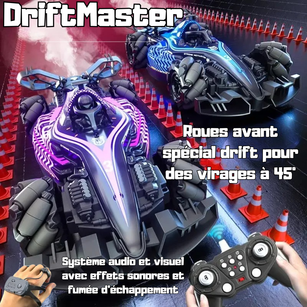David S. 4,8/5 noté OCT 2025Acheteur vérifiéAVISBLUFFANT LE DRIFT !Franchement, j'ai pris le DriftMaster pour mes gamins, et je suis bluffée ! Le drift à 45°, c'est juste dément, et le spray de fumée, ça rend trop bien en vidéo. La voiture est super rapide et hyper fun. Même quand elle tape un peu, elle tient le coup. Un vrai coup de cœur, on passe des heures dessus !